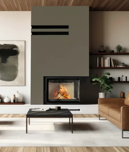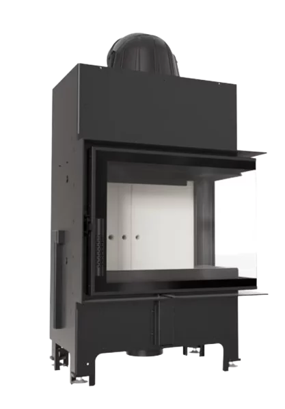 Wkład kominkowy Floki z linii kominków PRO o ciekawym kształcie, z bocznym przeszkleniem. Dzięki dwustronnej wizji ognia i delikatnej ramie frontowej doskonale wpisuje się w stylistykę nowoczesnych wnętrz. Tego typu kominek jest często wybierany w przypadku otwartych pomieszczeń, w których łączone są różne przestrzenie, np. salon z jadalnią. Zastosowana w kominku specjalnie profilowana płyta dolna sprawia, że mieści on w sobie większą ilość drewna. Nowoczesne rozwiązania zastosowane w urządzeniu gwarantują oszczędność energii i sprawiają, że jego obsługa i czyszczenie są bezproblemowe.