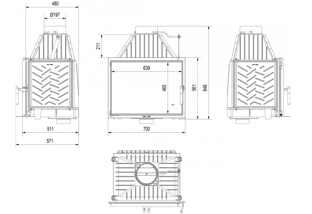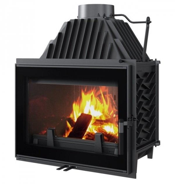 Wkład wyposażony jest od zewnętrznej strony w gęsto rozmieszczone radiatory. Dzięki zastosowaniu takiego rozwiązania powierzchnia oddawania ciepła do otoczenia jest dużo większa, a jednocześnie zwiększona jest masa kominka.